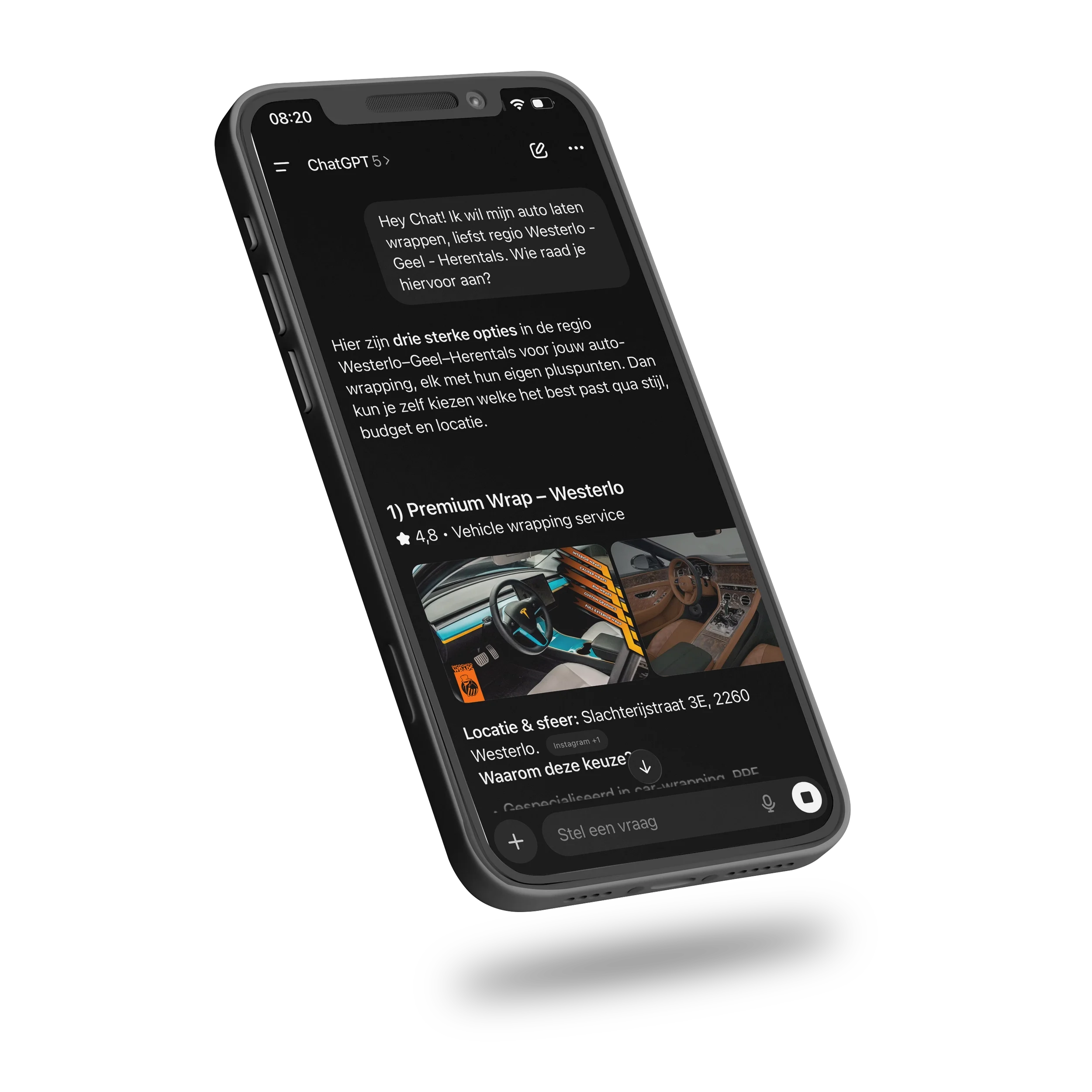 Premium Wrap in Westerlo investeerde in GEO-optimalisatie. Vandaag wordt hun bedrijf niet alleen gevonden in Google, maar ook herkend en genoemd door AI-modellen zoals ChatGPT. Dat is de kracht van GEO.